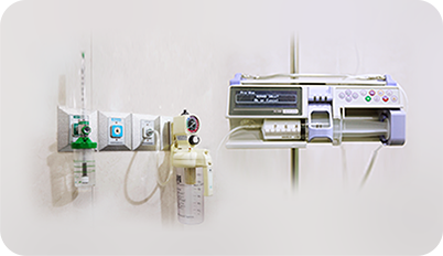 持続型麻酔投入機が手術中安全に麻酔が効き呼吸が正常に動くように手伝います。また、手術後回復室や入院室内に酸素/窒素供給装置を配置し楽で心地よい麻酔回復が可能です。